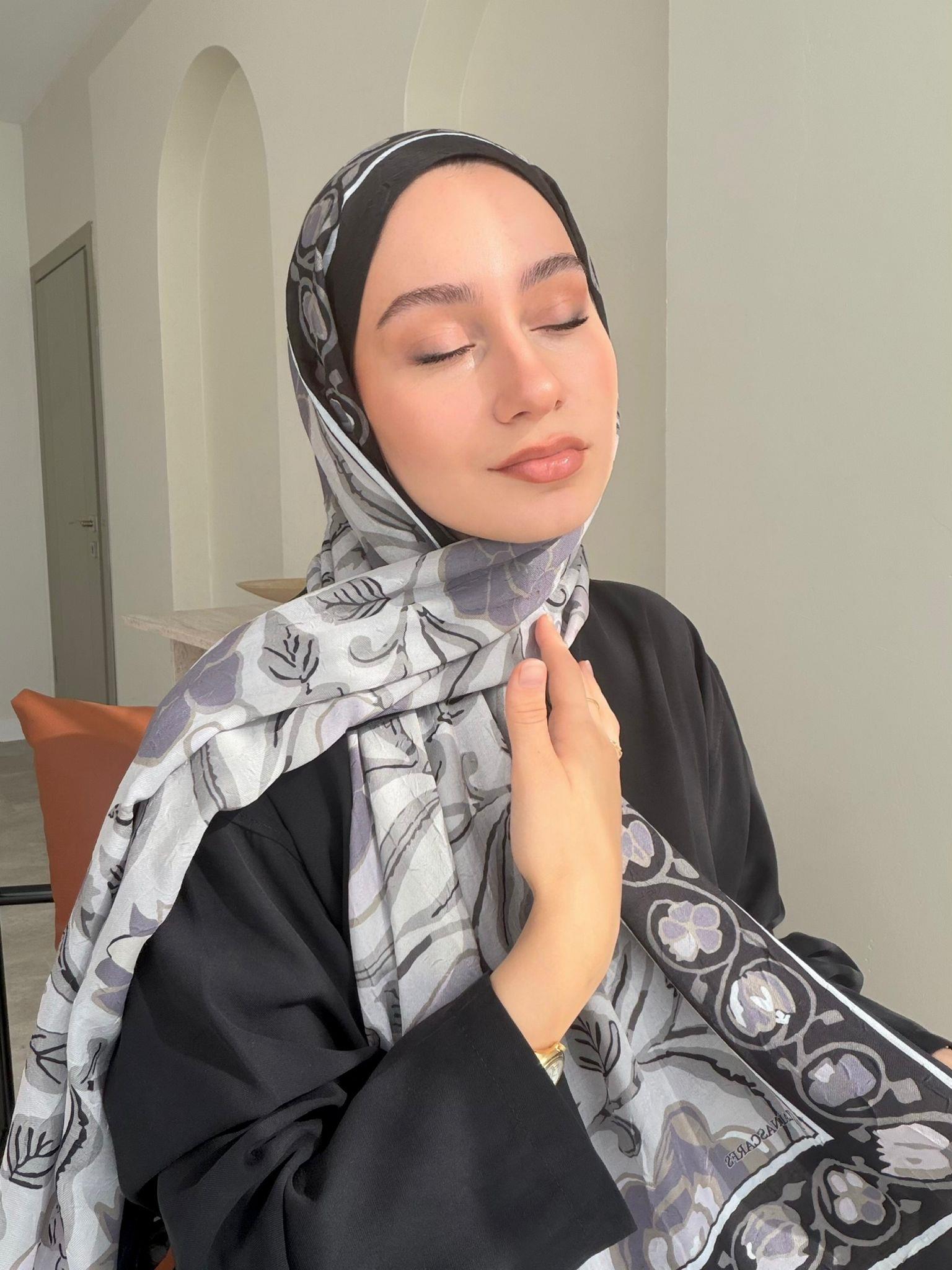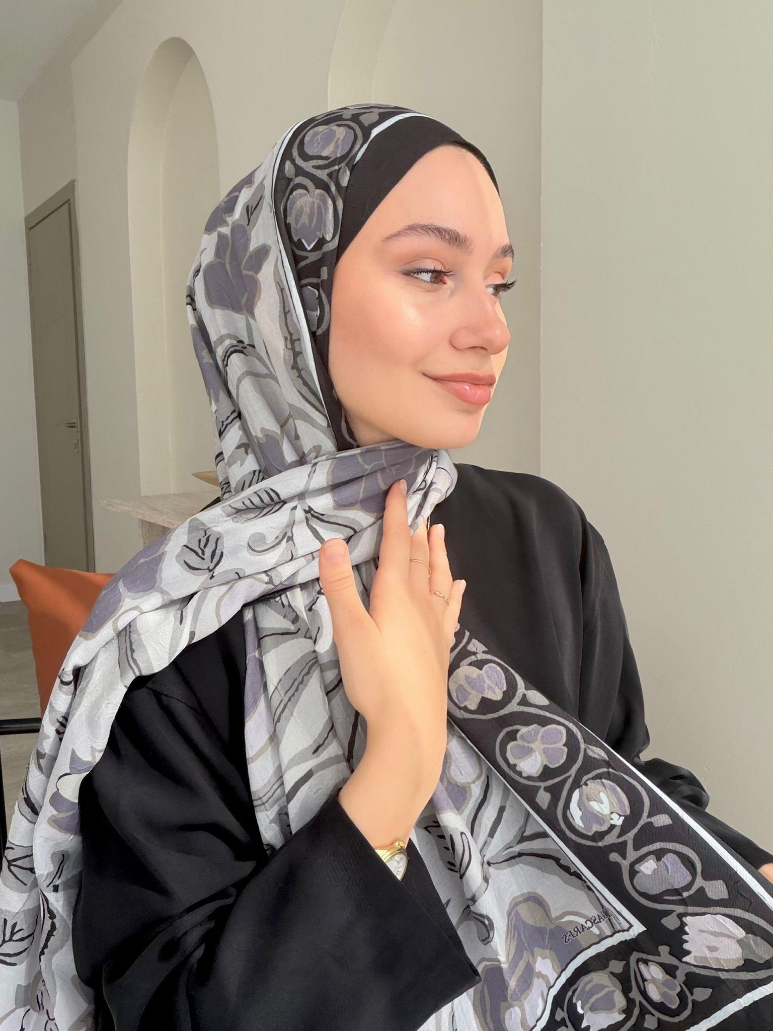 Flowers Bambu Kraş Şal-Siyah&Gri (ZS-461)