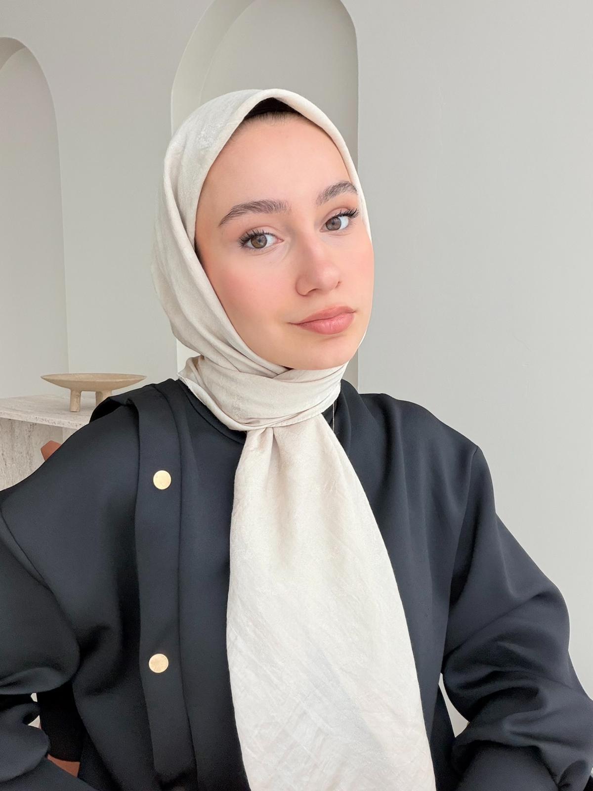 Parıltı Pamuk Jakar Eşarp - Bej (ZS-460)