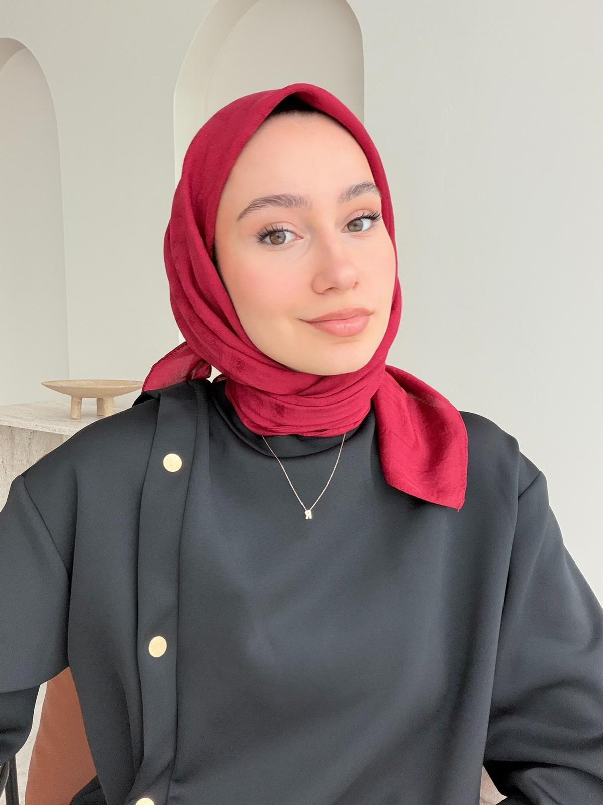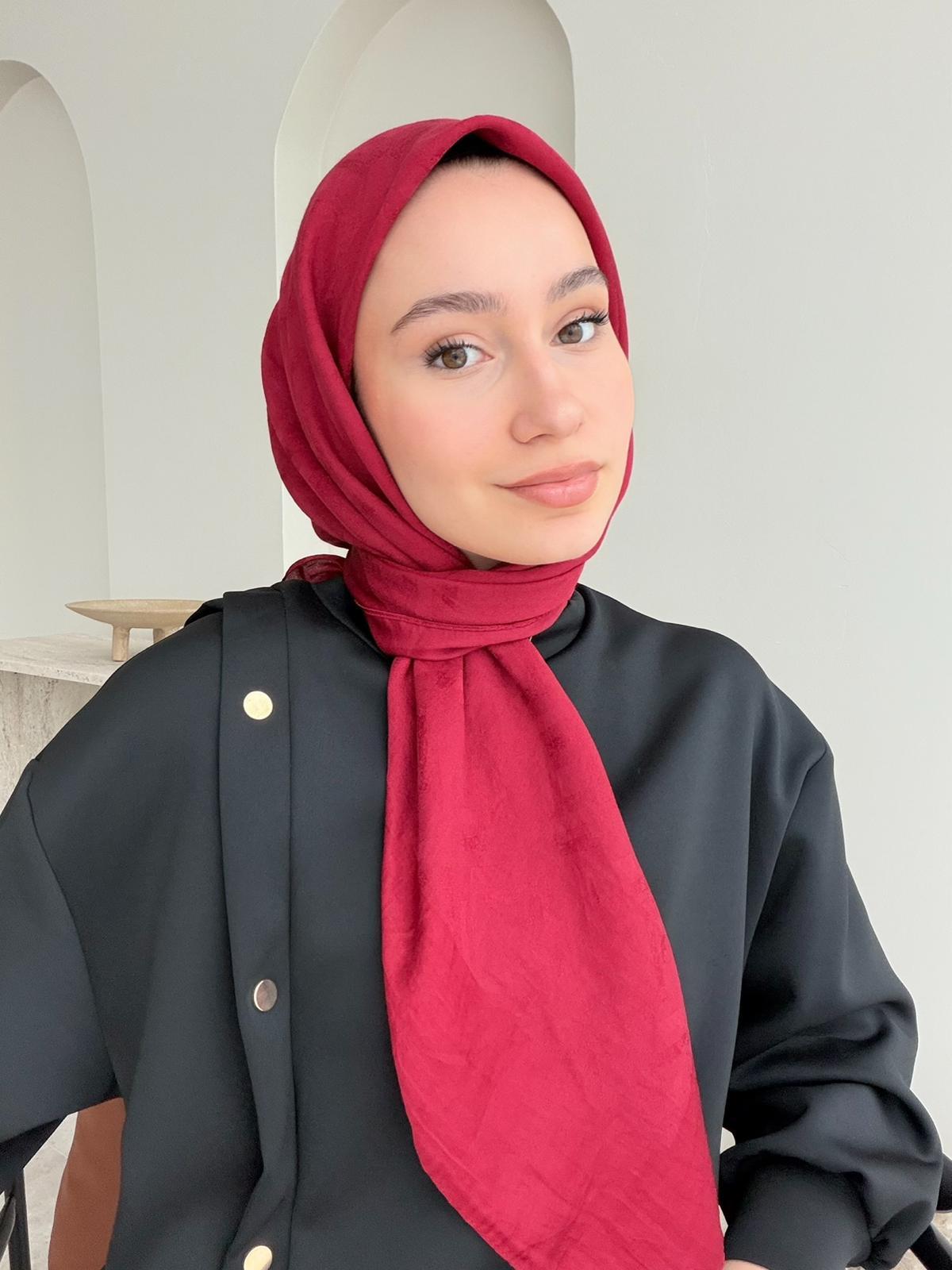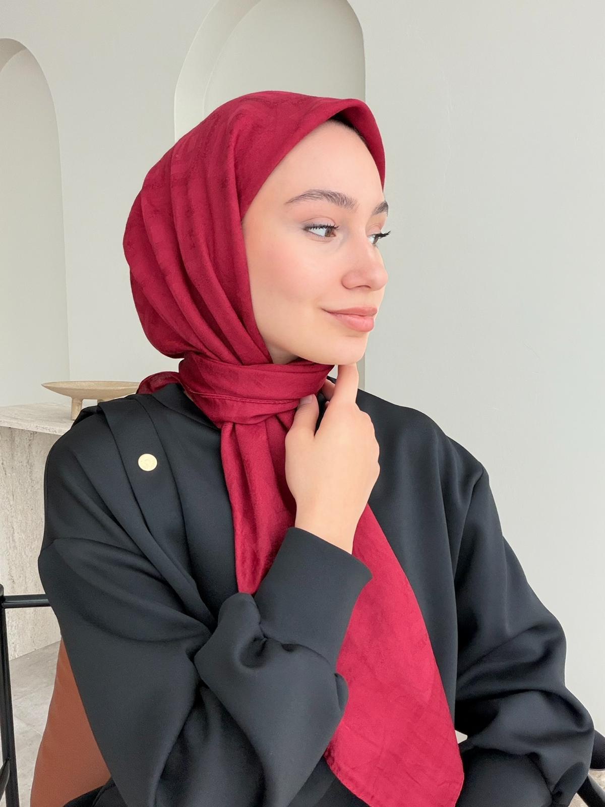 Parıltı Pamuk Jakar Eşarp - Bordo (ZS-460)