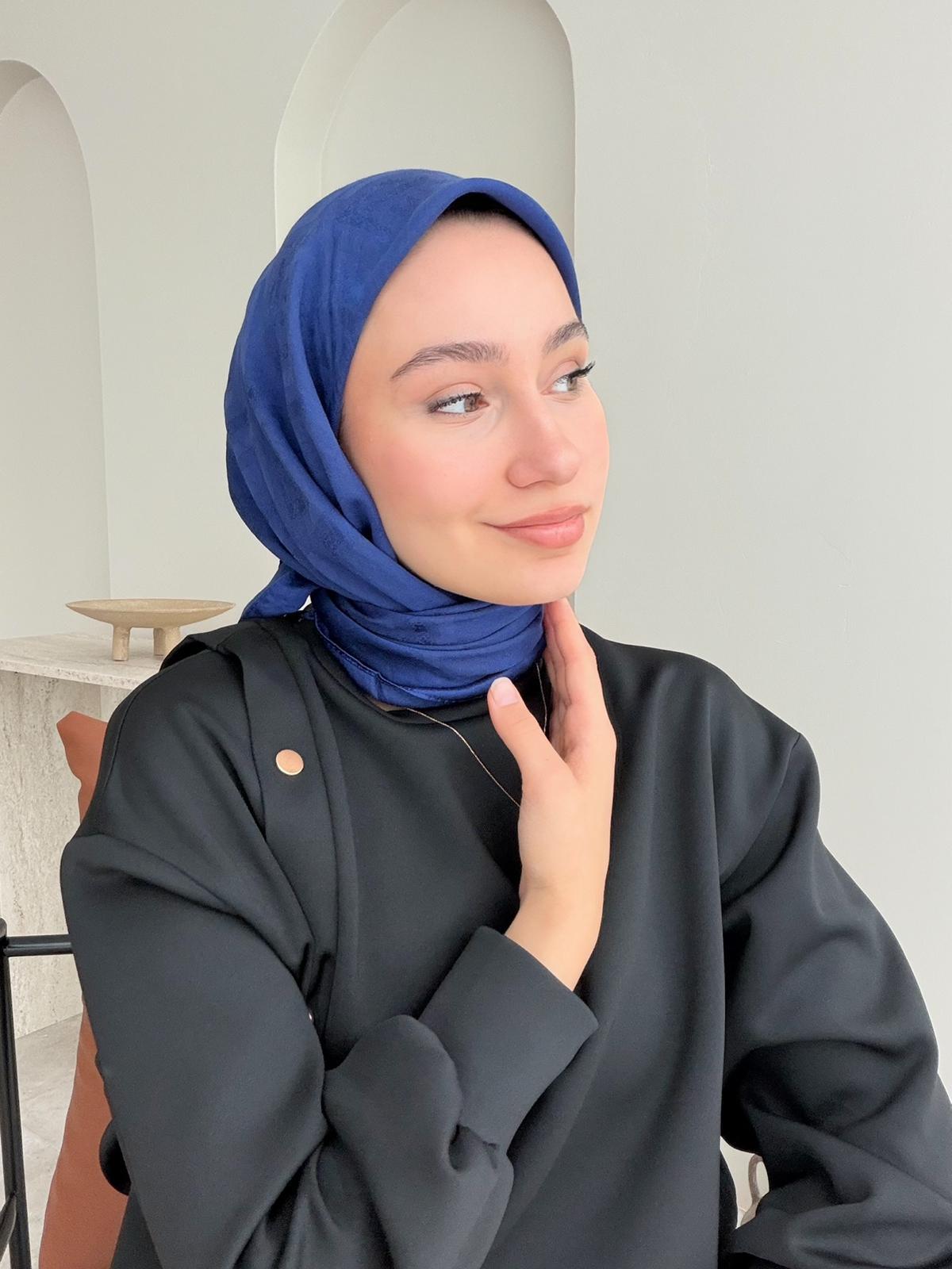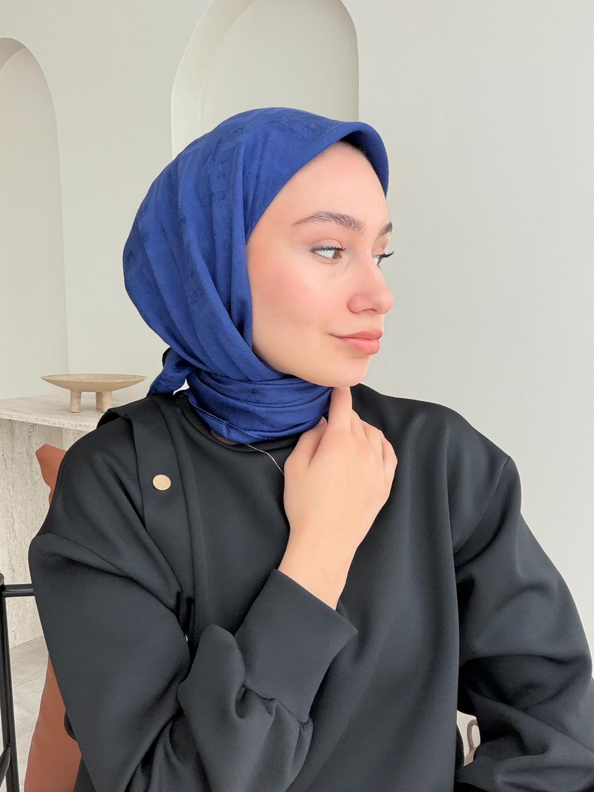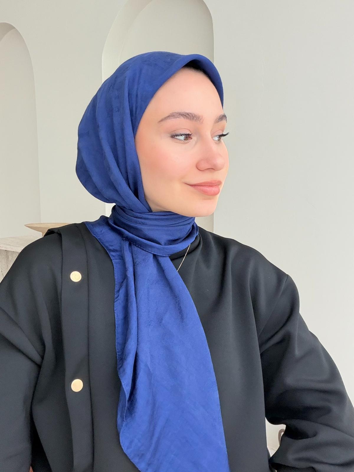 Parıltı Pamuk Jakar Eşarp - Gece Mavisi (ZS-460)