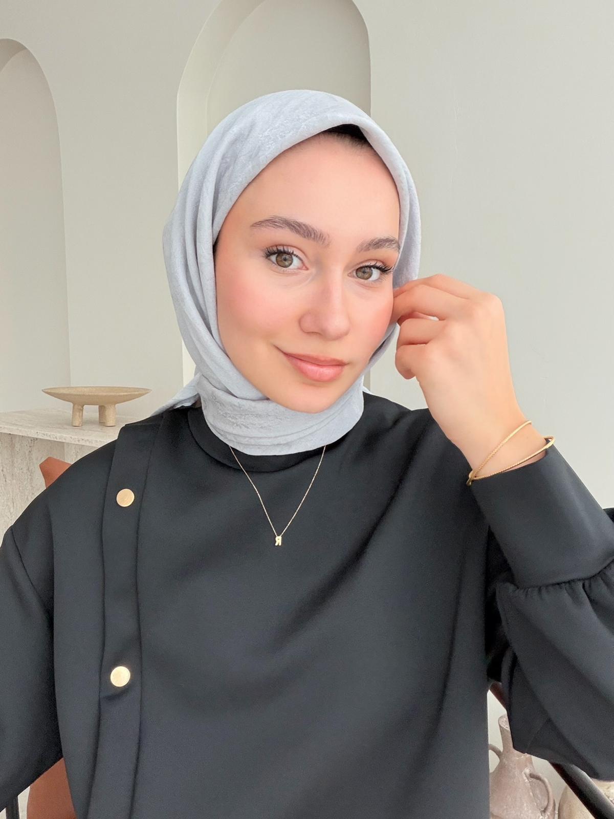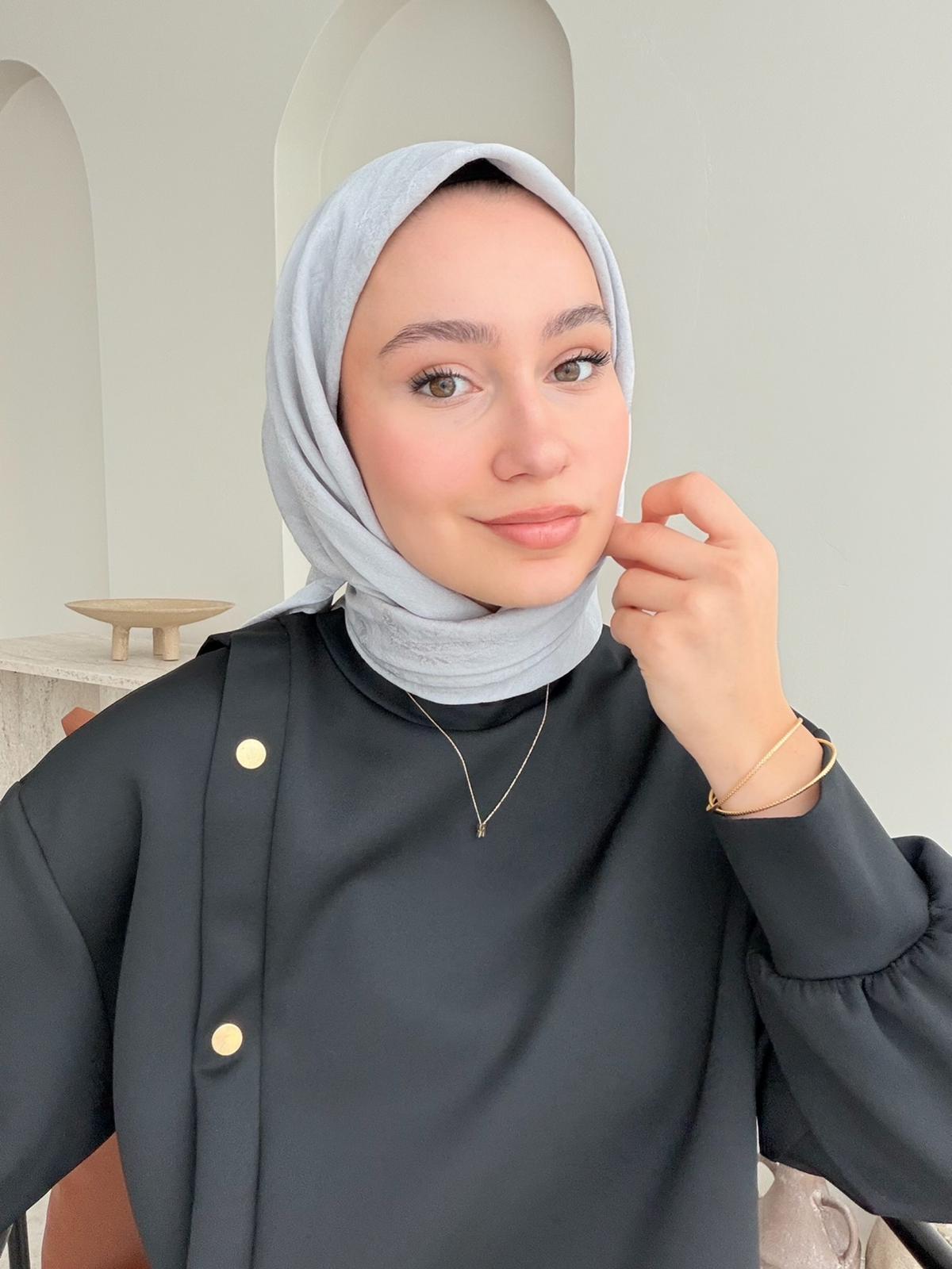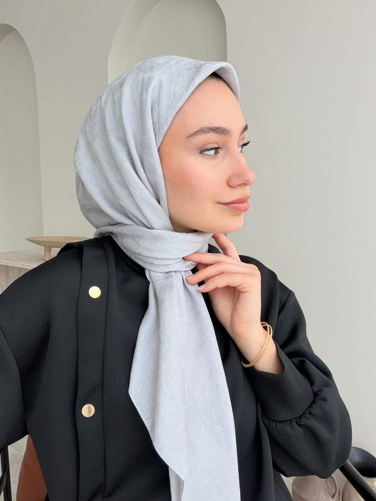 Parıltı Pamuk Jakar Eşarp - Gümüş (ZS-460)
