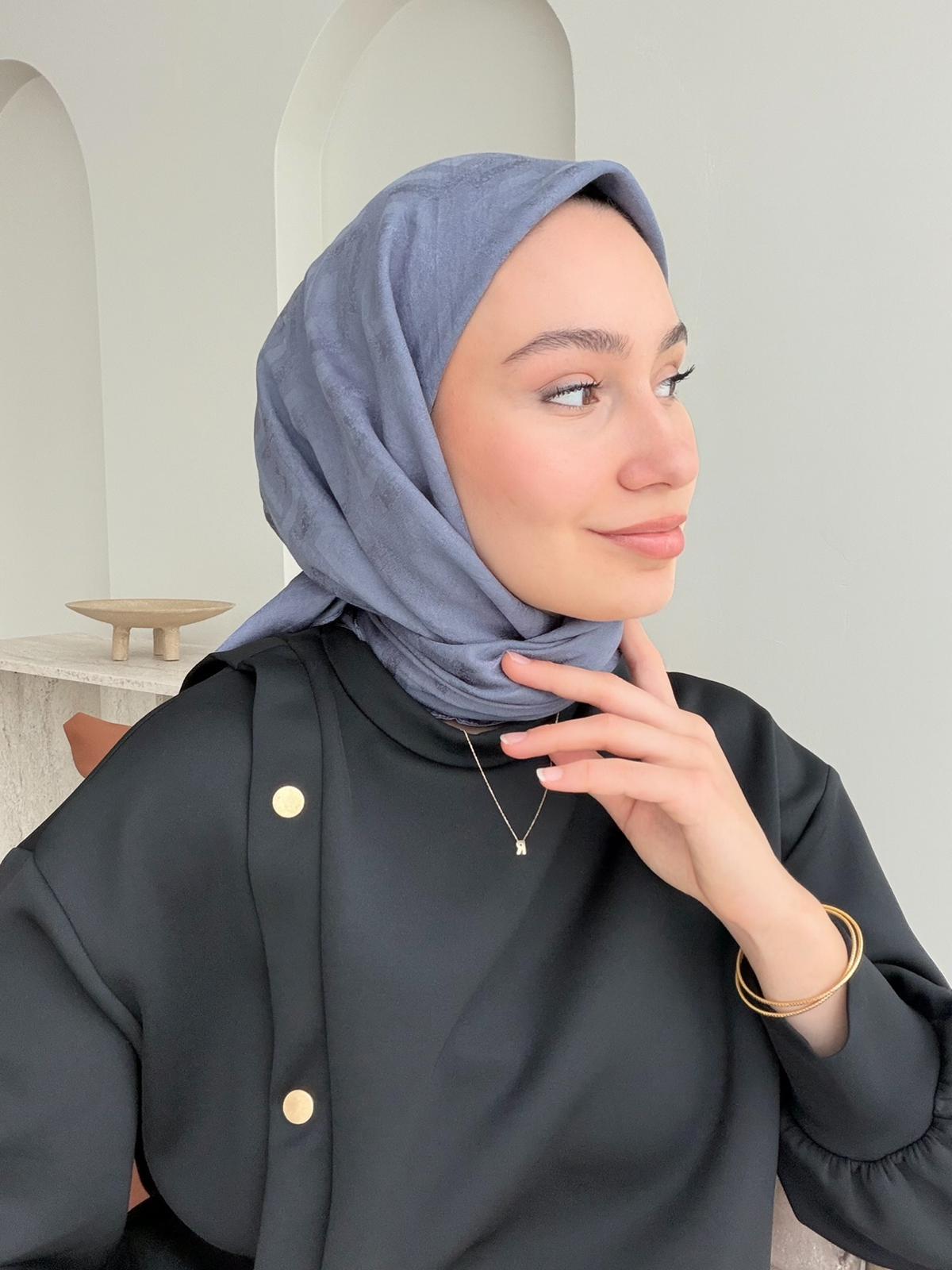 Parıltı Pamuk Jakar Eşarp - Koyu Gri (ZS-460)
