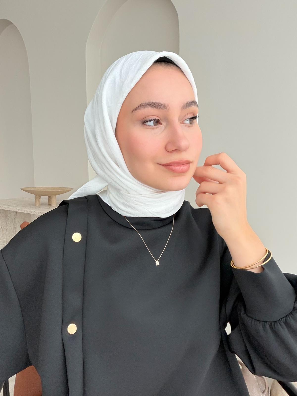 Parıltı Pamuk Jakar Eşarp - Beyaz (ZS-460)